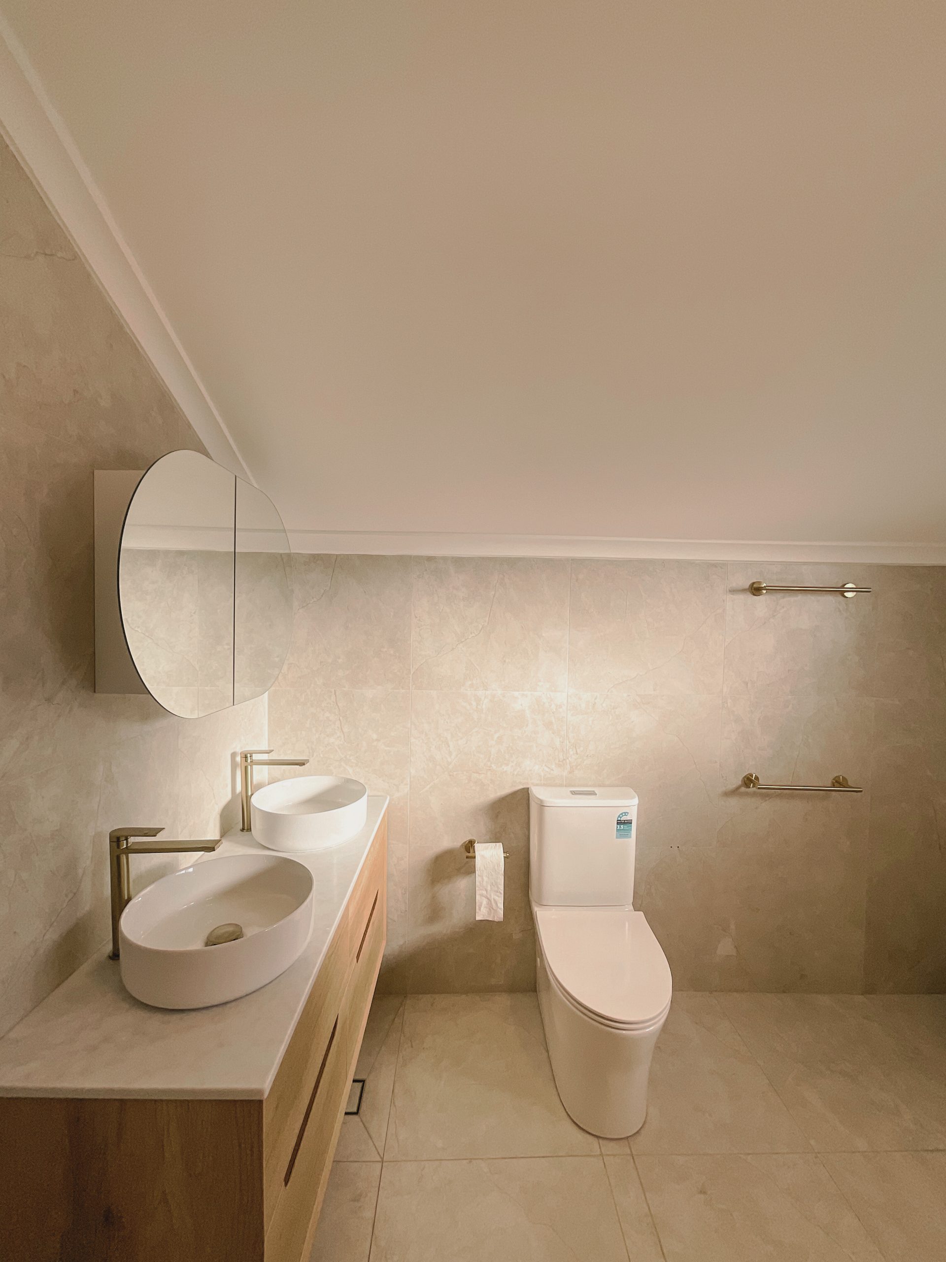 This Burwood transformation saw a dated two-storey, 3-bedroom house receive a complete, family-focused revamp. We delivered a new kitchen, bathroom, and staircase, along with custom space solutions that created stylish, functional areas for a family of three. Highlights include elegant herringbone flooring, warm wood tones, and a cleverly integrated bar fridge facing the dining room for effortless entertaining.